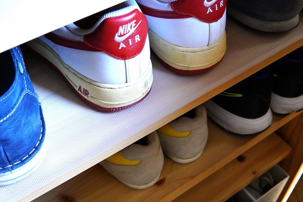 片側が滑り止め素材になっているので、下足箱に敷いてみたら靴を出し入れしてもズレることなく、快適に使えました。