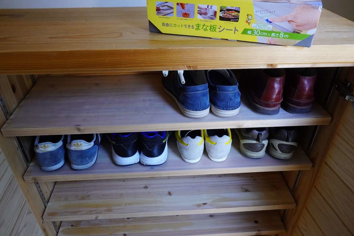 下足箱の収納のサイズに合わせて、自由にカットできるのも便利な点でした。