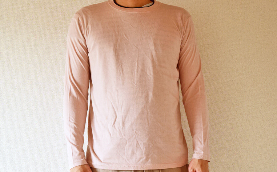 つづいて、夫用の春物衣料「天竺無地レイヤード長袖」399円(税込)。