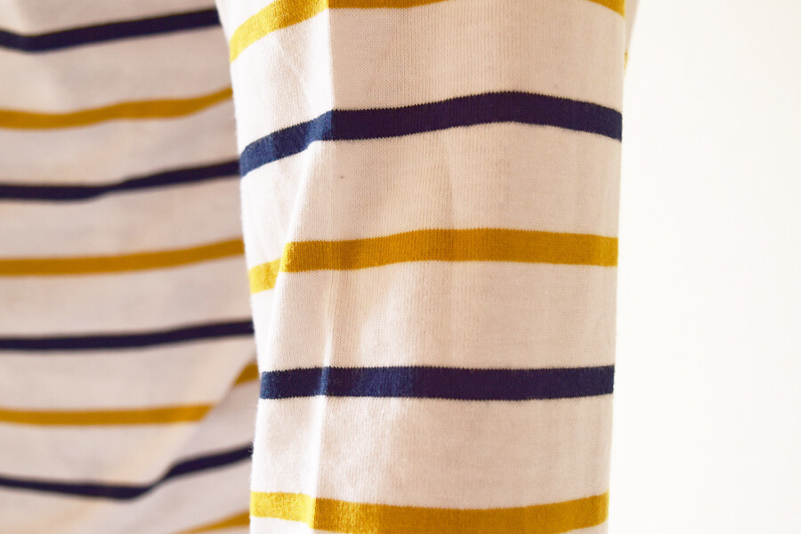 インナーとしてボーダーTシャツを着ていますが、ほとんどわかりません。生地の厚みが値段に反映されたのでしょう。