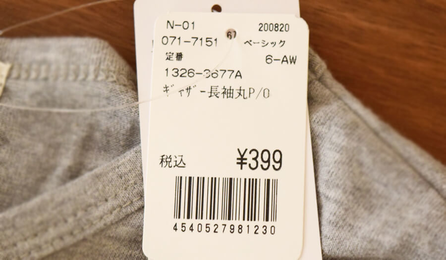 まずは、まさかのワンコイン以下!399円(税込)の春物衣類を紹介します。