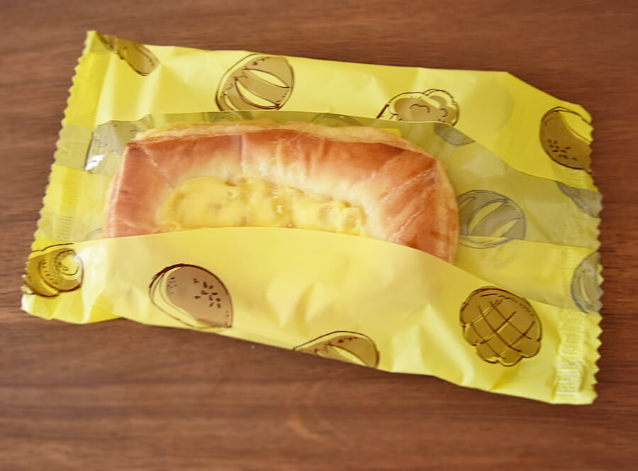 ややぺちゃんこ気味のクリームパン。詰めているうちに少々つぶれたのかもしれません。甘さひかえめのクリームがおいしい菓子パンでした。