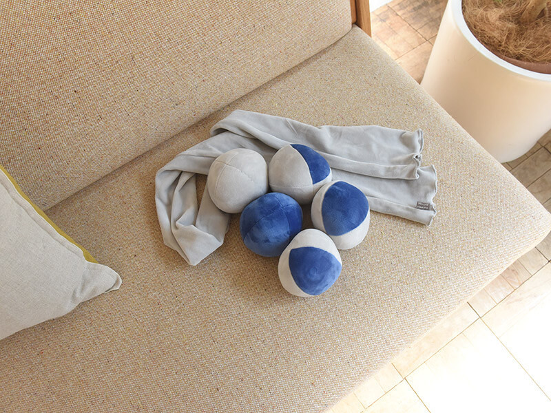 ストレッチの効いたカバーに、ボール状の小さなダンベルが5個入ったトレーニンググッズ。