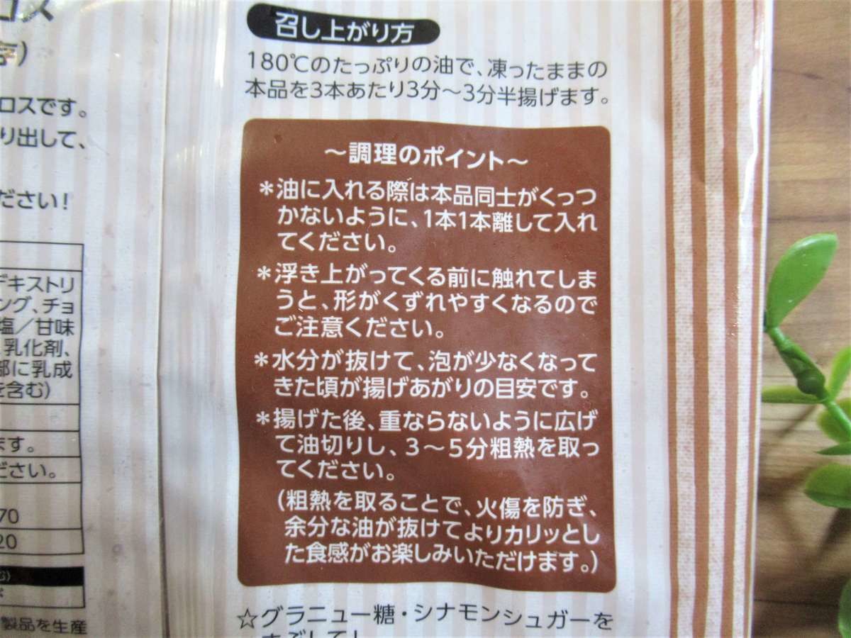 今回購入した「チョコチューロス」も難易度が高そうですが、パッケージ裏に記載されている「調理のポイント」を忠実に守って作ってみたいと思います。