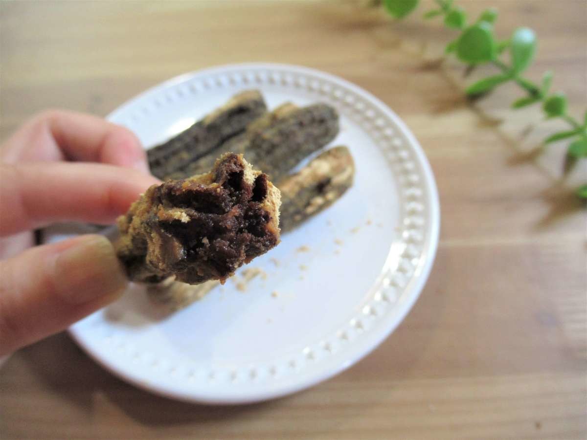 まずはそのまま揚げたてを食べてみると、カリッと食感とチョコレートの香りがいいですね。