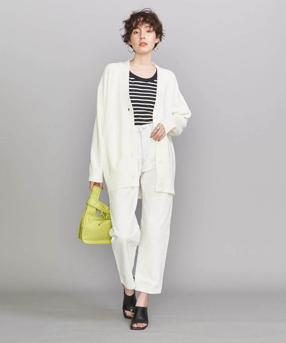 カーデに合わせてバッグもホワイトに揃えると、グッと洗練されたスタイルに。