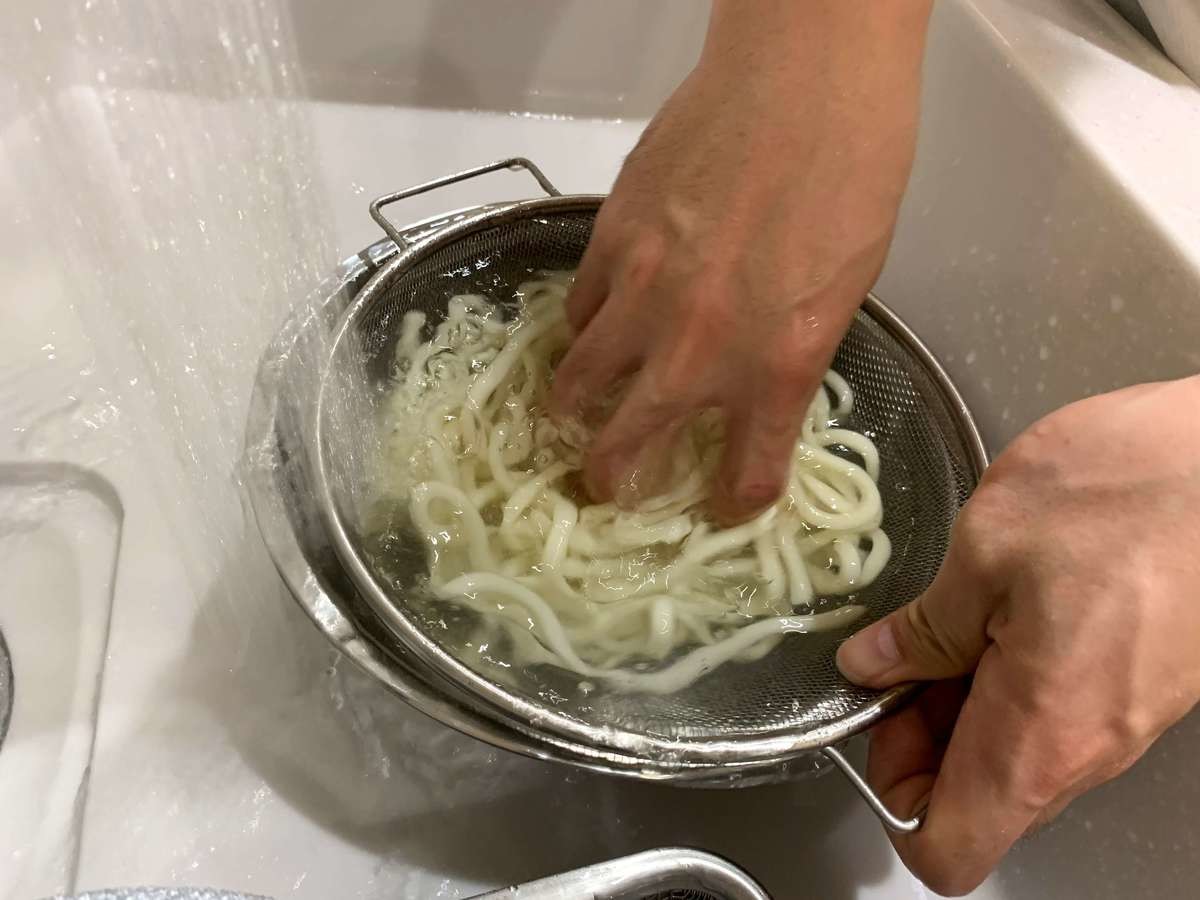 うどんの作り方④うどんを茹で、冷水で冷やす