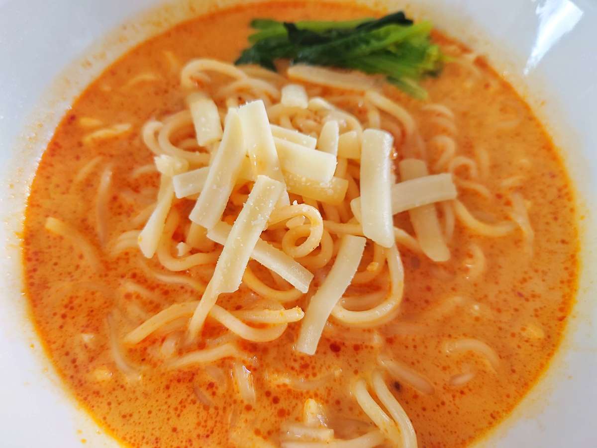 パラパラとチーズをかけるとトロッと麺に絡みつき、濃厚さましましでおすすめです。