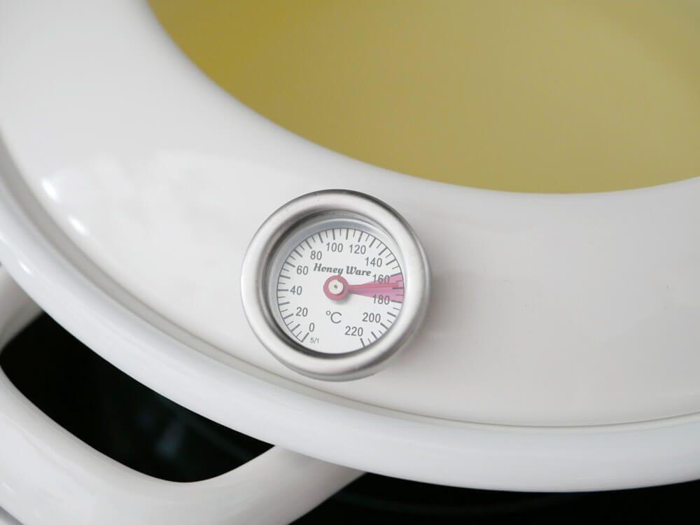 美味しい天ぷらを揚げるには、やっぱり温度管理が大切。 「天ぷら鍋」の天面には既に温度計が付いているので、いつでも正確な温度を把握できます。