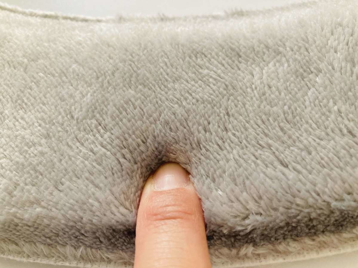 指で軽く押すだけでこんなに沈みます!これは寒い冬にも期待できそうです。100均の便座シートではここまでのさらふわは体感できません♪
