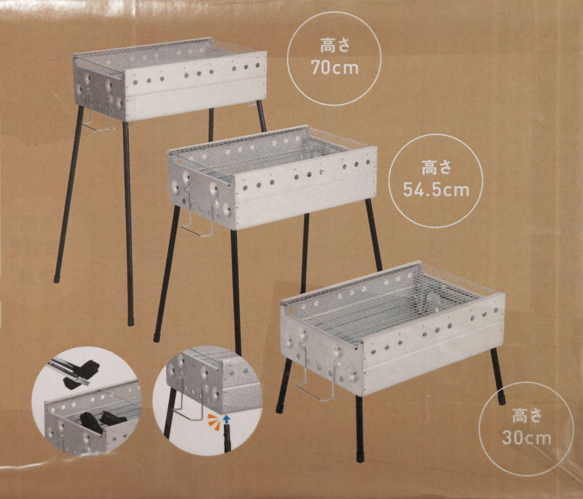 三段階の高さ調節が出来るので、立って焼いたり、座りながら焼いたり、どんなシーンでも使えます!