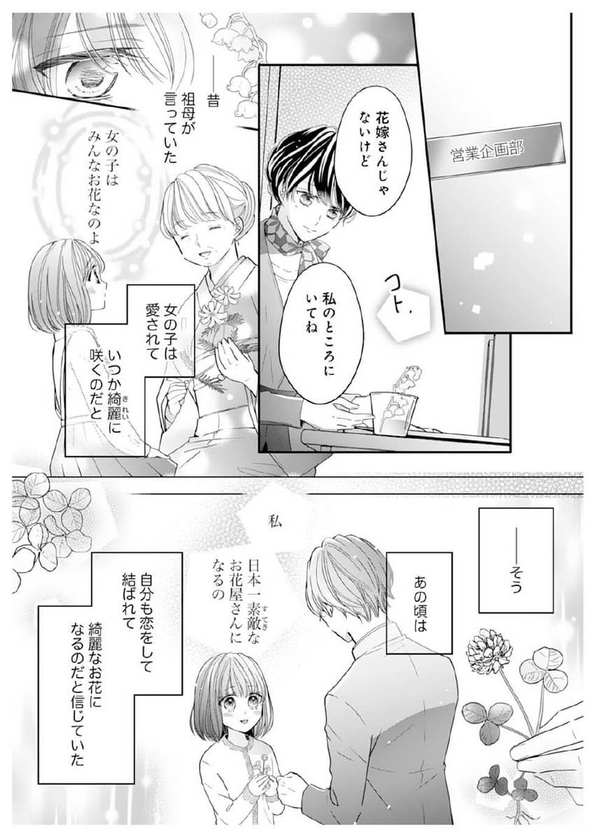実家が花卉販売業を営む乃梨子は、傾きかけた家業を救うためお見合いをすることに。 意気込んで見合いの場へ向かうと、そこに現れたのは勤務先の天敵上司・鷹取蓮司だった!