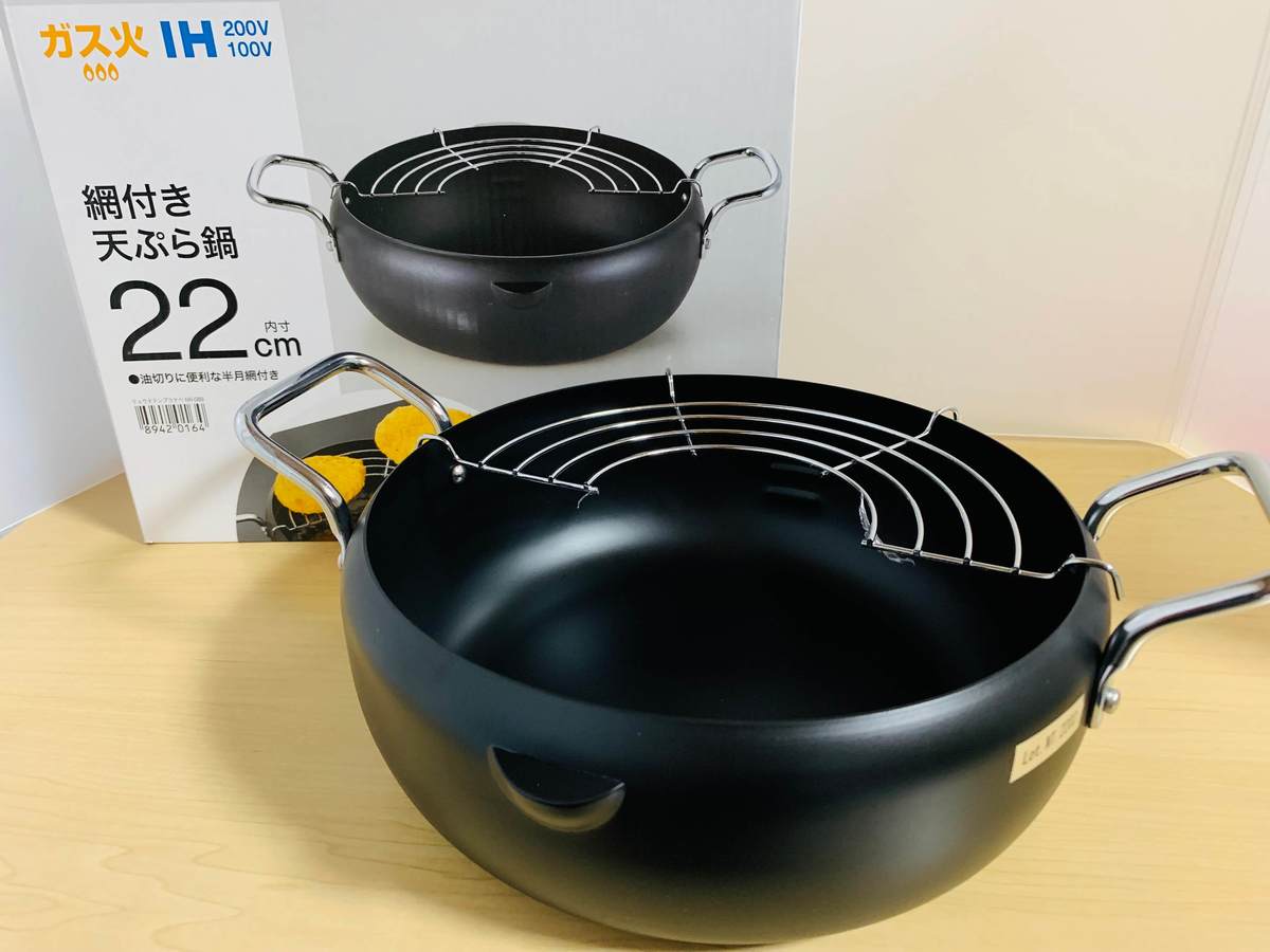 ニトリの「網付き天ぷら鍋 22cm」(837円 税込)は、約900gの軽さで扱いやすく熱伝導率もよいので、サクサクな揚げ物が作れます。
