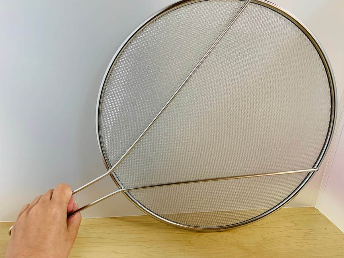 数多くのテレビ番組で紹介されている人気のアイテムが、ニトリの「油はね防止網30cm」(349円 税込)。油を使う料理や湯切りとしても使えるお助けアイテムです。