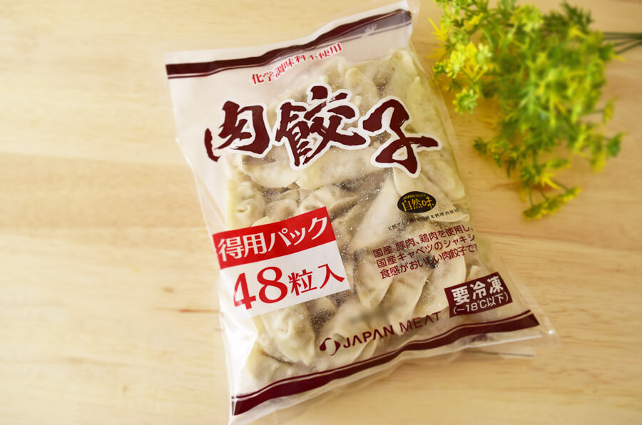 ジャパンミートオリジナル商品「お肉屋さんの肉餃子(48個入り)は、540円(税込)。1個あたり約10.4円ですね。