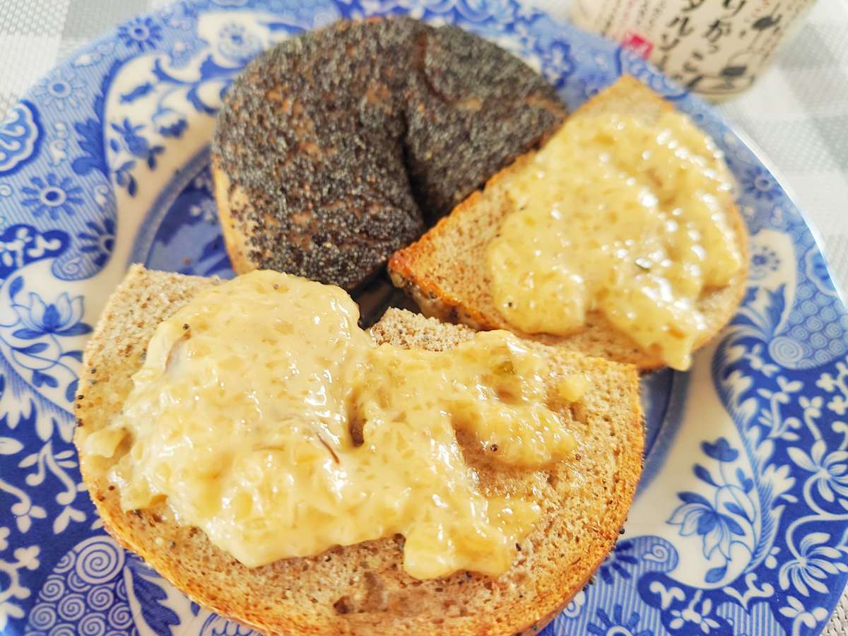 食パンやベーグルに塗って焼けば、いぶりがっことタルタルの香りが食欲を刺激するトーストの出来上がり!