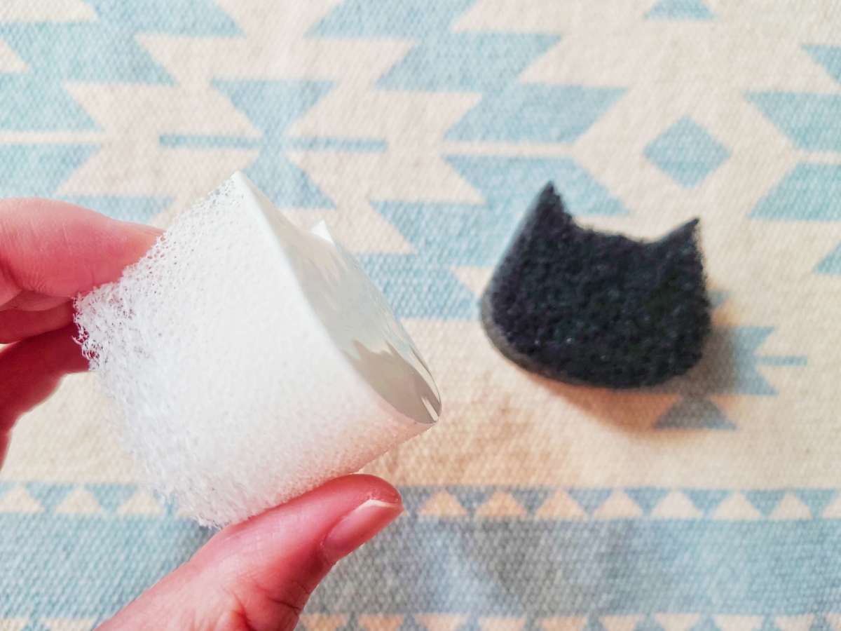 ネコの顔型のスポンジで白と黒がセットになっています。