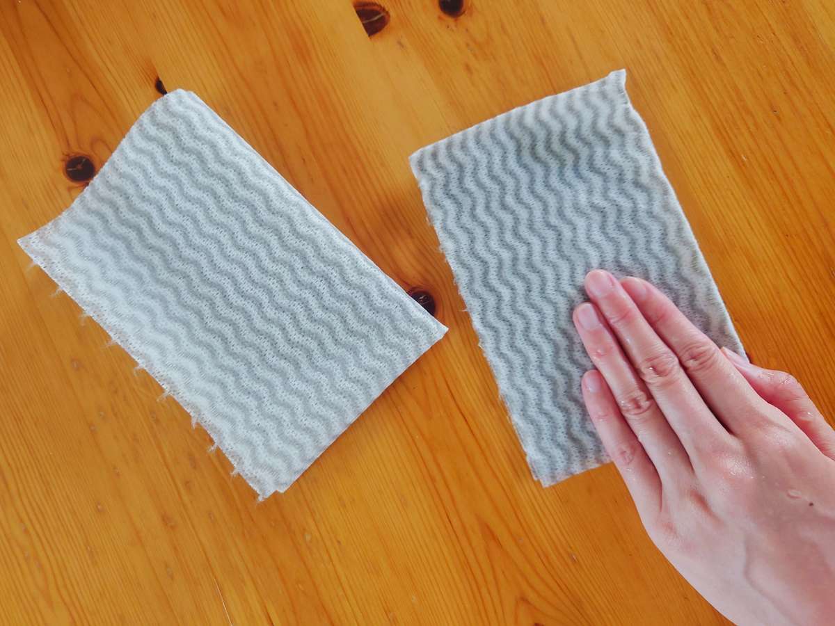 切れ目1枚でも充分使い勝手はいいけれど、洗ってギュッと絞る時のは2枚分あったほう絞りやすくて楽ですね。
