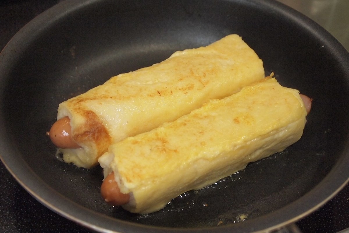 「フレンチトーストソーセージ」作り方④フライパンで焼く