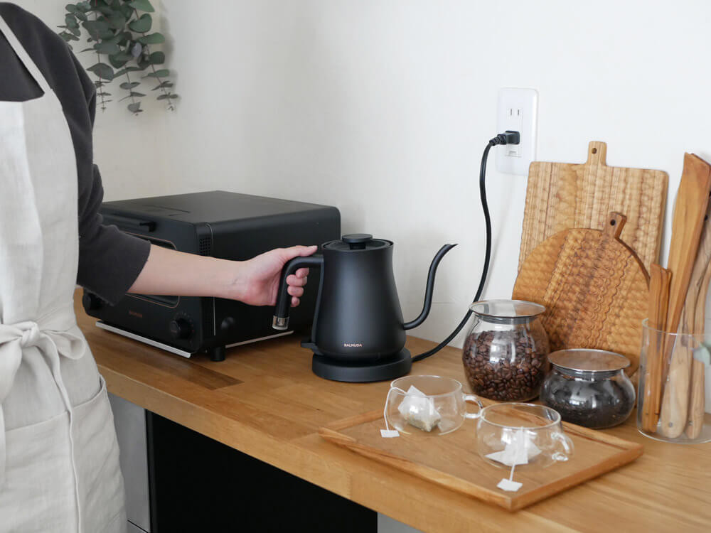 電気ケトルはキッチンだけでなくダイニングやテーブル上でも使うもの。なのでリビングでくつろいでいる時や来客時も視界の中に入ってくるから、インテリア性は重視したいですよね。
