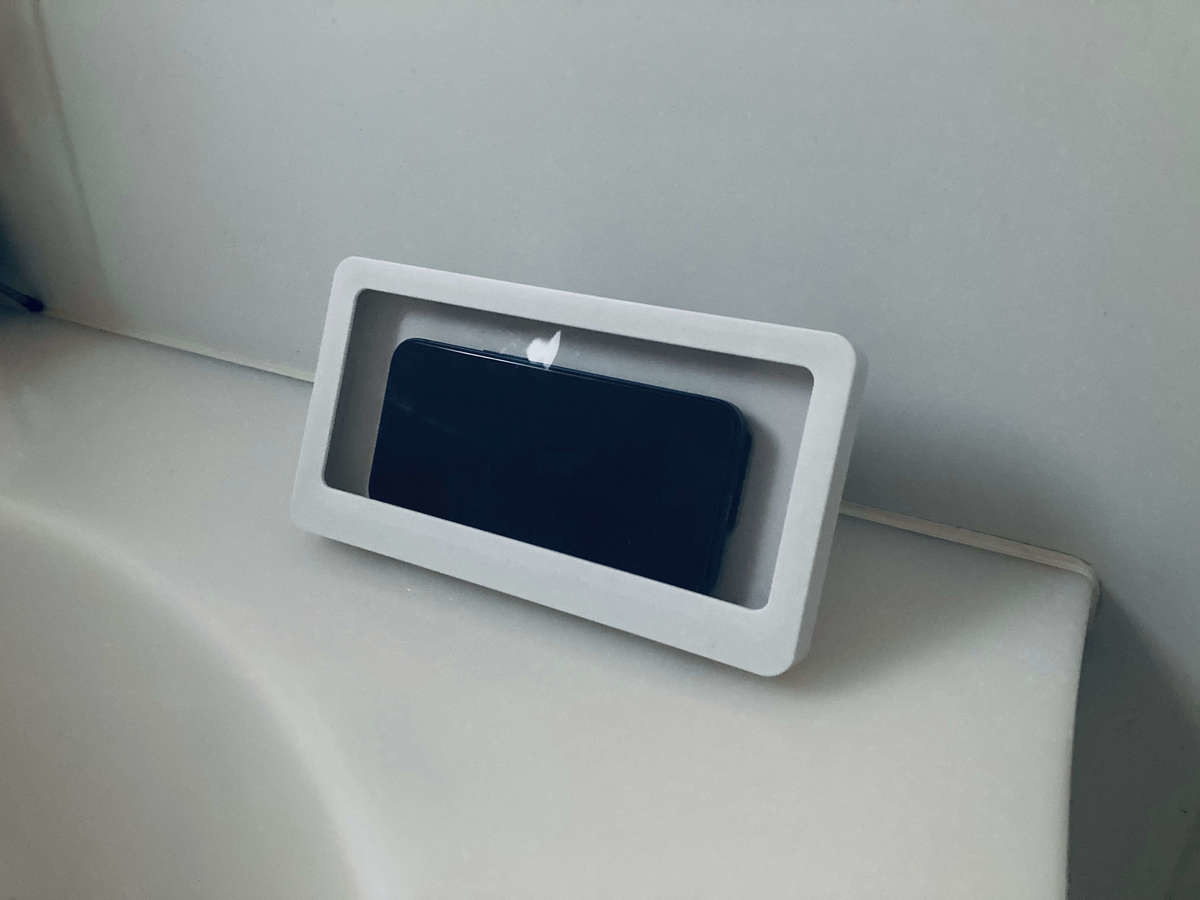 お風呂場の狭いスペースにも置くことができました!スマホ防滴ケースがあれば、お風呂につかりながら、YouTubeやネトフリが楽しめますね。