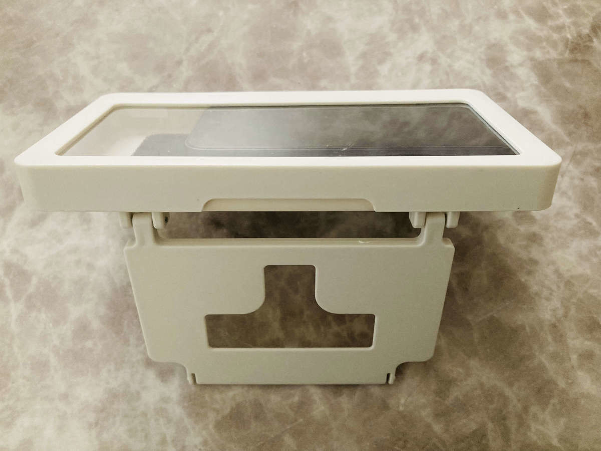 まずはスマホ防滴ケースの上部をパカッと開けます。