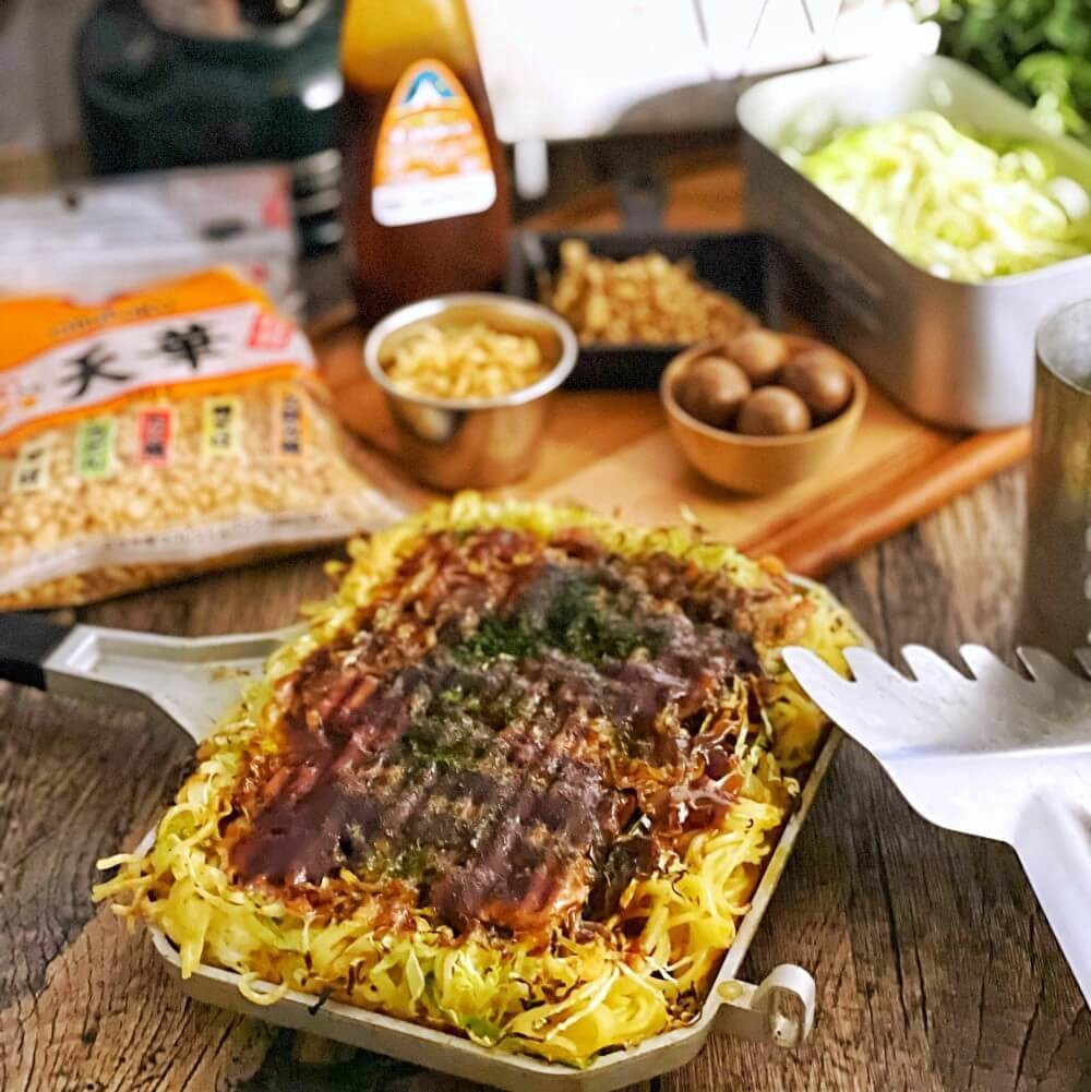 【アウトドア】人気のホットサンドメーカーでBBQ風お好み焼きが完成!