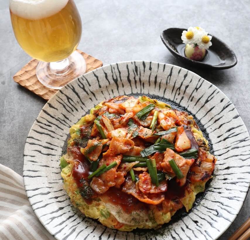 【お酒のお供】ピリ辛がビールに合う~♡豚キムチたっぷりお好み焼き
