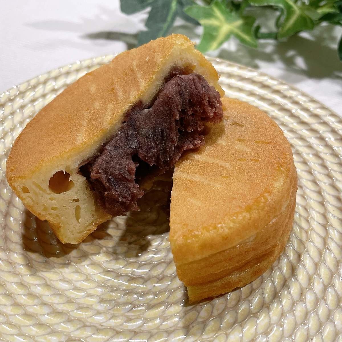 半分に切ってみると、たっぷりのつぶあんが入っていました。