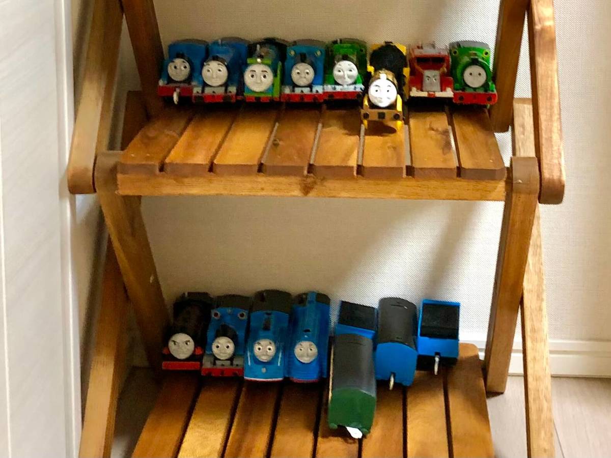 とにかく何を置いてもサマになるのが魅力! 5歳の息子が自慢のトーマスコレクションを並べ、うっとりしています。