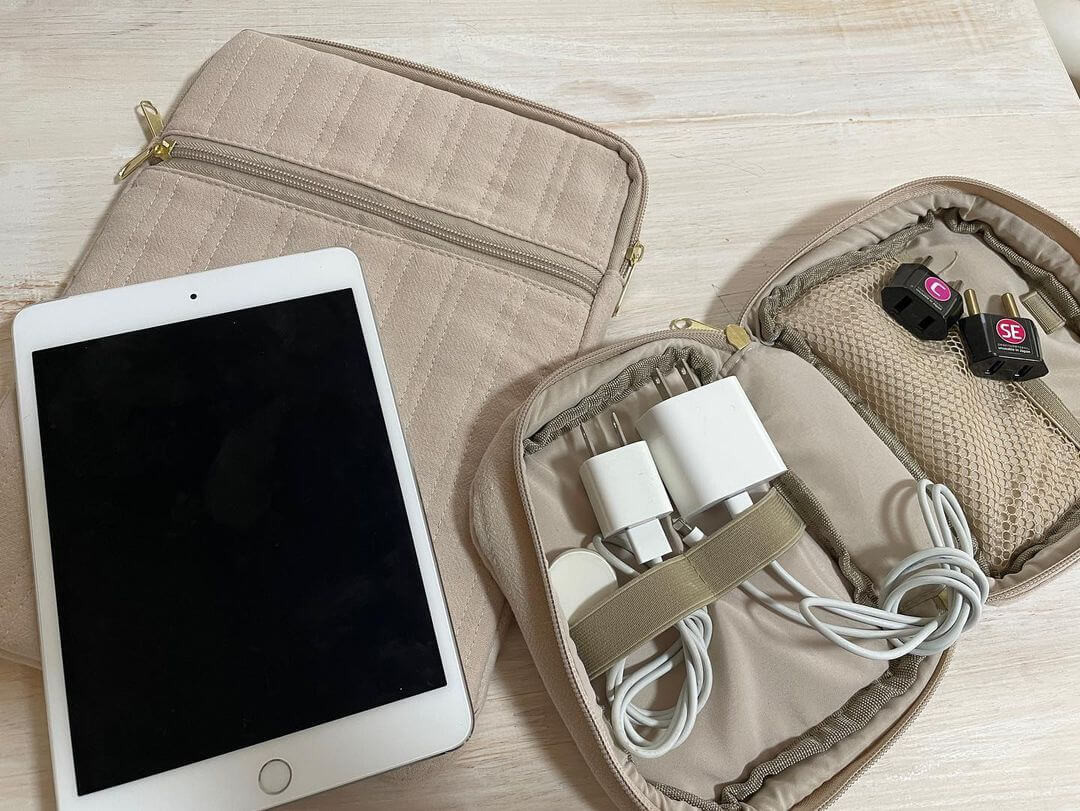 お仕事の必需品だけど、まとめづらくて散らかりやすい、ケーブル、モバイルバッテリー、マウス、充電器、USB、イヤホンなどをまとめてスッキリ収納できるケースです。