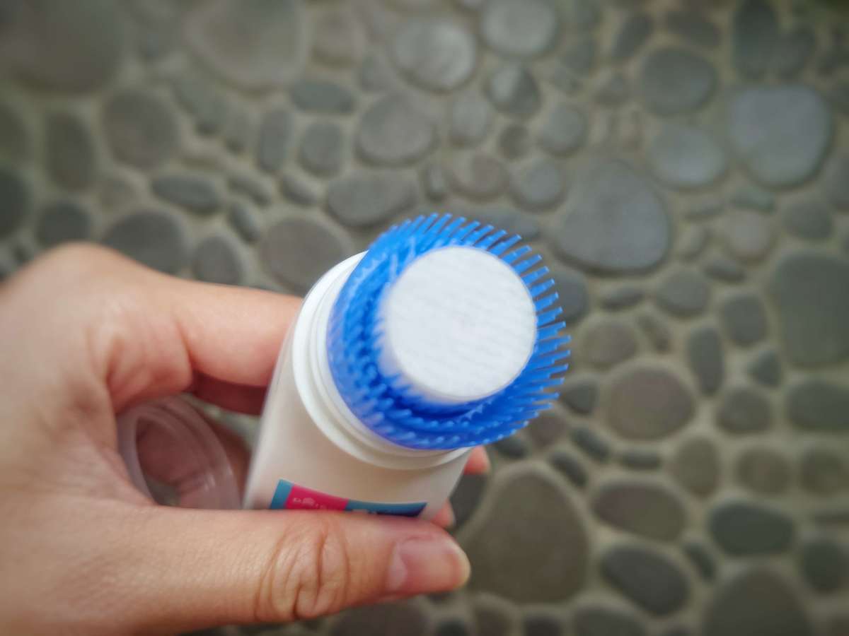 フタを開け、スポンジをスニーカーに押し当て液が出てきたら、泡立つようにこすります。