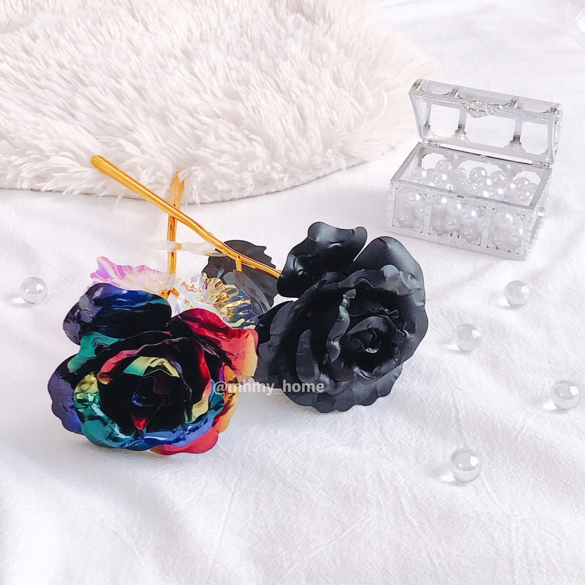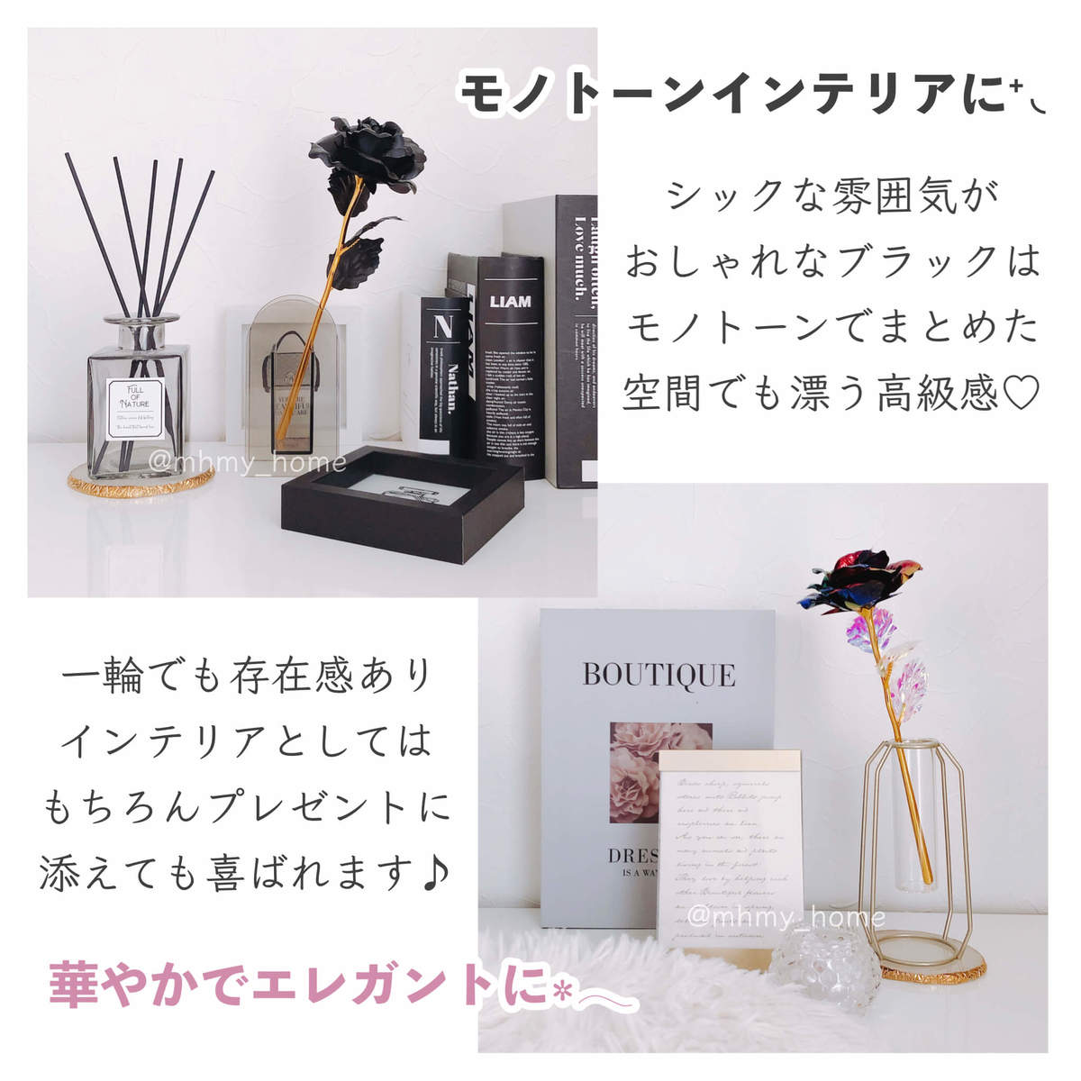 一輪でも存在感のあるレインボーローズは、インテリアとしてはもちろん、プレゼントに添えても喜ばれること間違いなし!華やかでエレガントさもありますよね。