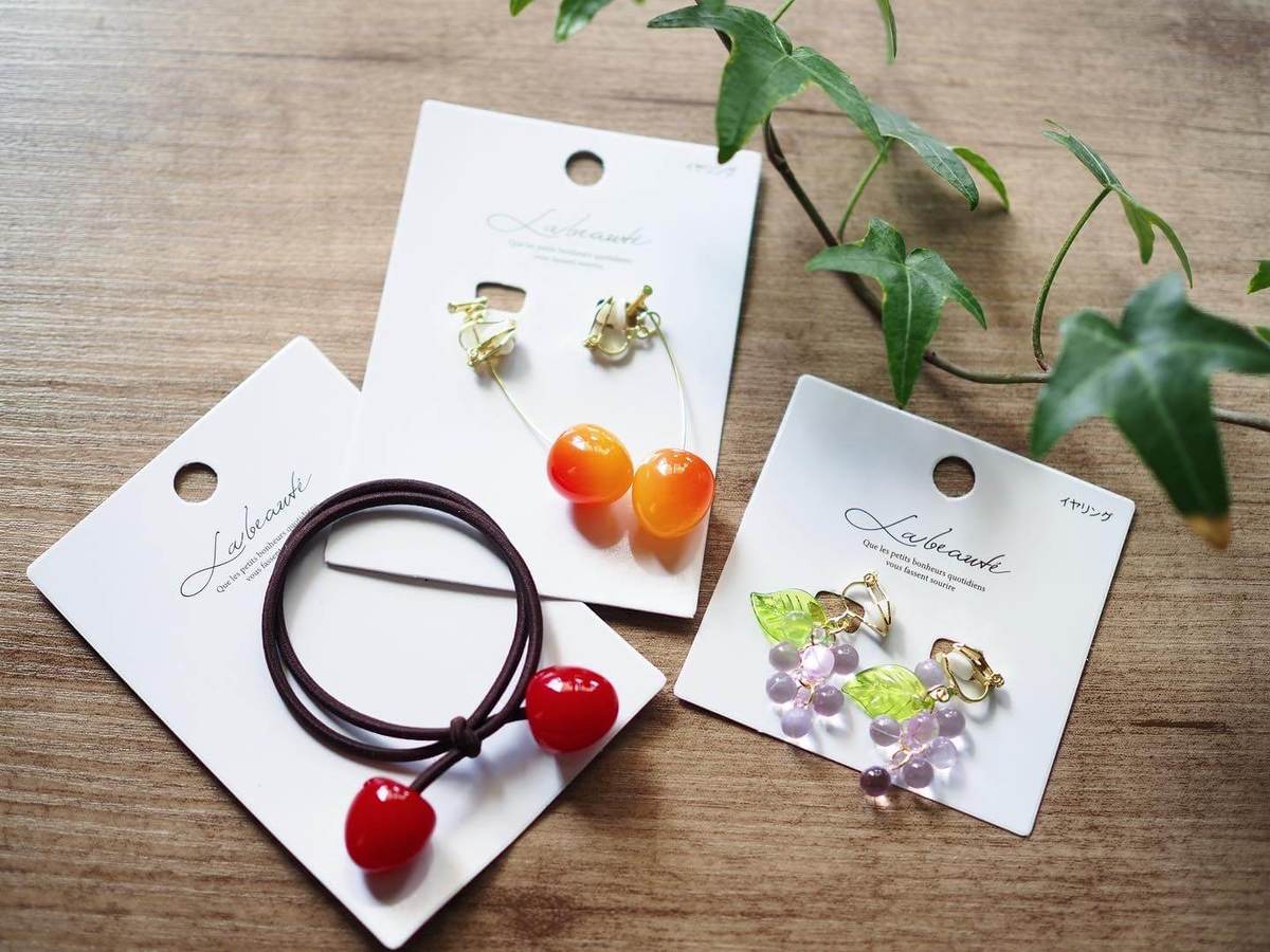 イヤリングやピアス、ヘアゴムなど、どれも透け感がかわいいクリア素材のチャームがついていて、特にさくらんぼの実がとってもリアル♪
