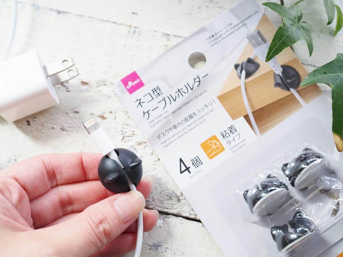 こちらのケーブルホルダーは裏面に粘着テープがあり、机や壁などにつけておけば充電ケーブルの定位置が作れます。かわいいネコ型で、4個入りというのもお得ですよね!