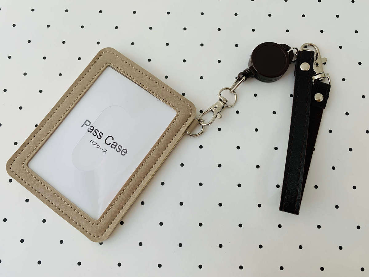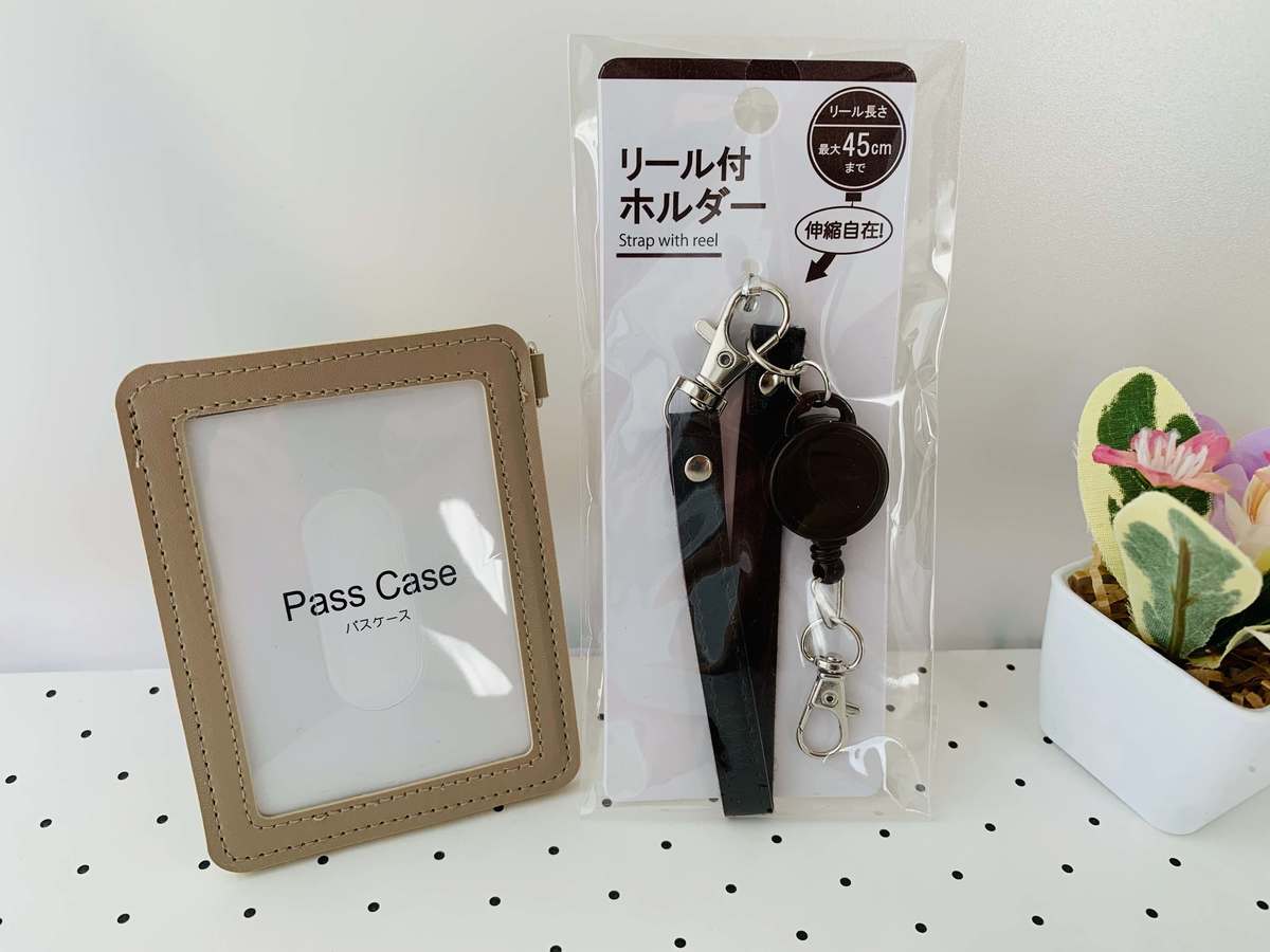 リール付きホルダーは、大人っぽいカラーのブラウンをチョイス。220円でオリジナルのパスケースが完成です!