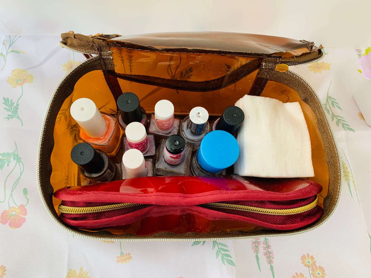 また、大きく素材も柔らかいので、高さの違うマニキュアやネイル用品もスッキリ収納できます。