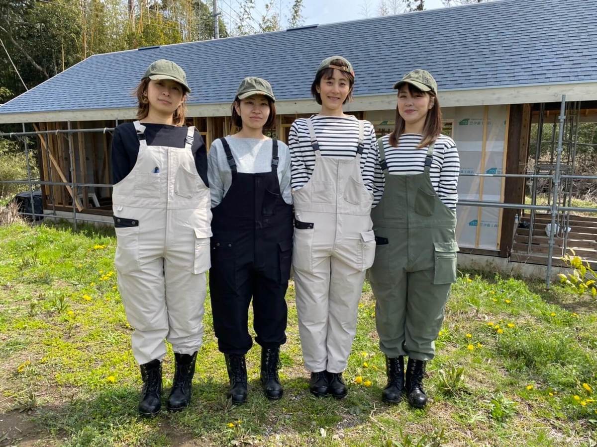 木材加工に続き、服が汚れる作業も多いのですが、せっかくならば「女子っぽくおしゃれに楽しみたい!」とメンバーでおそろいの作業用ユニフォームを着て活動をしています。
