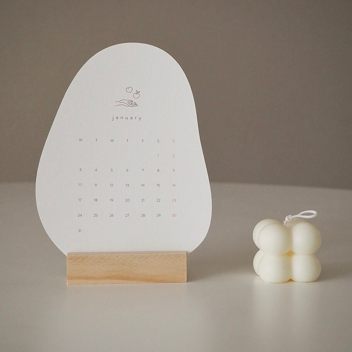 木製スタンド付き韓国風卓上カレンダー。いびつな形をした丸いフォルムは、韓国インテリアの代名詞といっても過言ではないですよね。