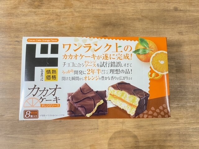 ドン・キホーテで大人気カカオケーキのオレンジソース味。これまでにマロンケーキなどもありましたが、チョコとオレンジの組み合わせは楽しみです。