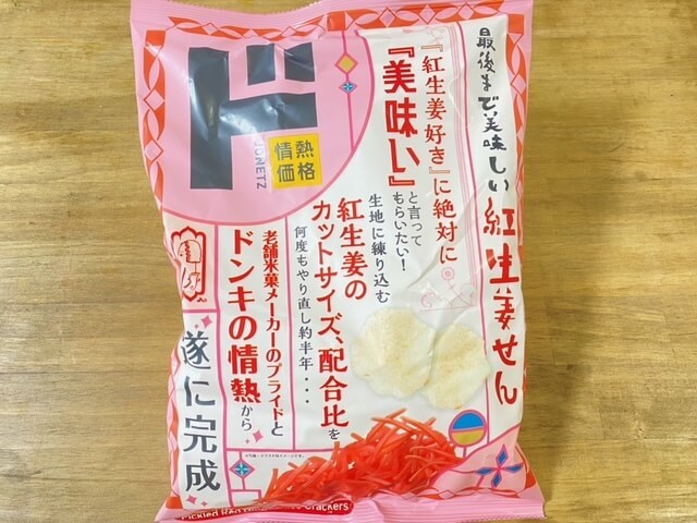 さくらカラーのパッケージがパッと目に入ったこちらは、最後まで美味しい紅生姜せん。