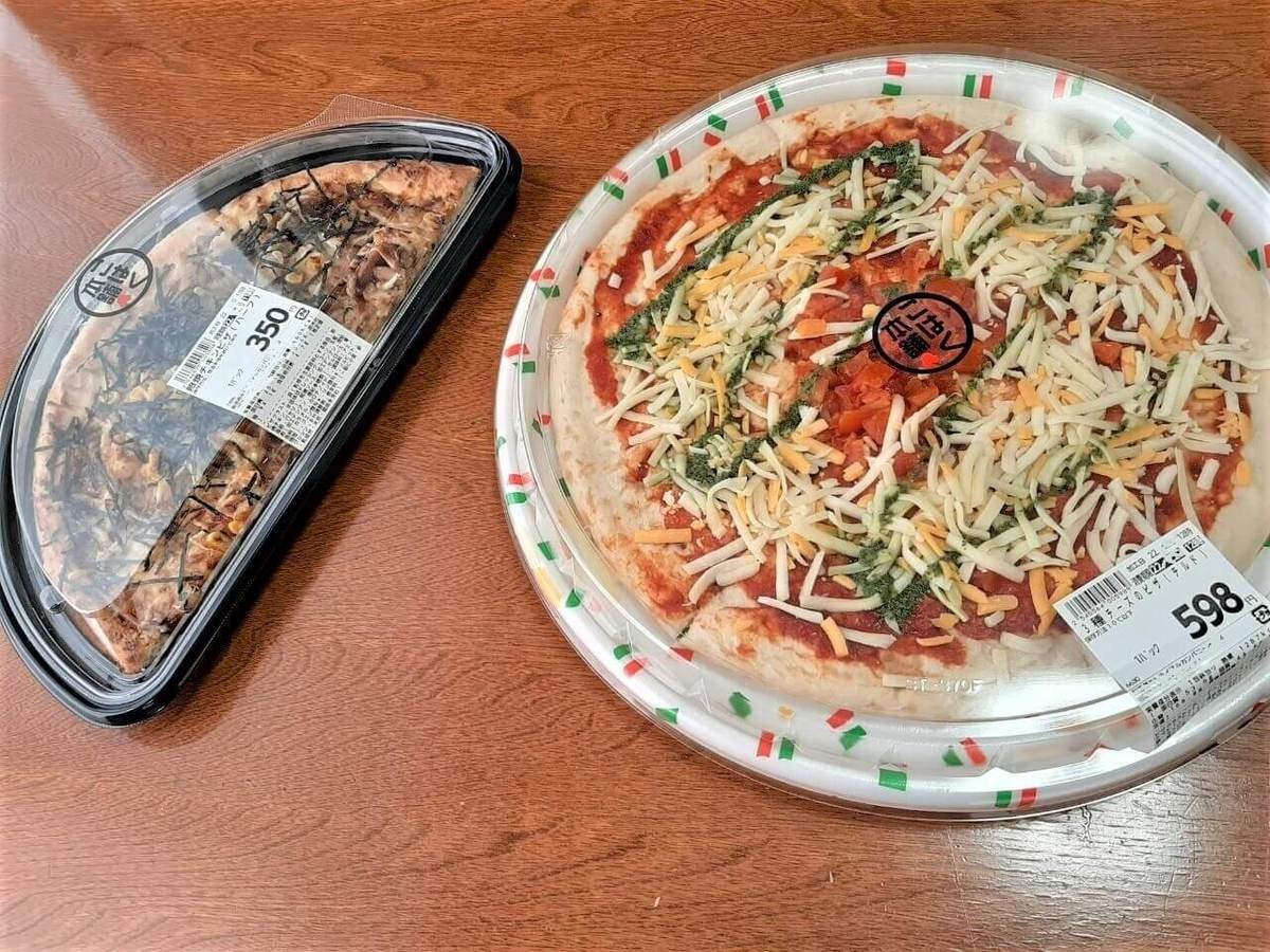今回は3種チーズピザを購入しました。バジルオイルの色合いが鮮やかで見た目もいい感じですね。