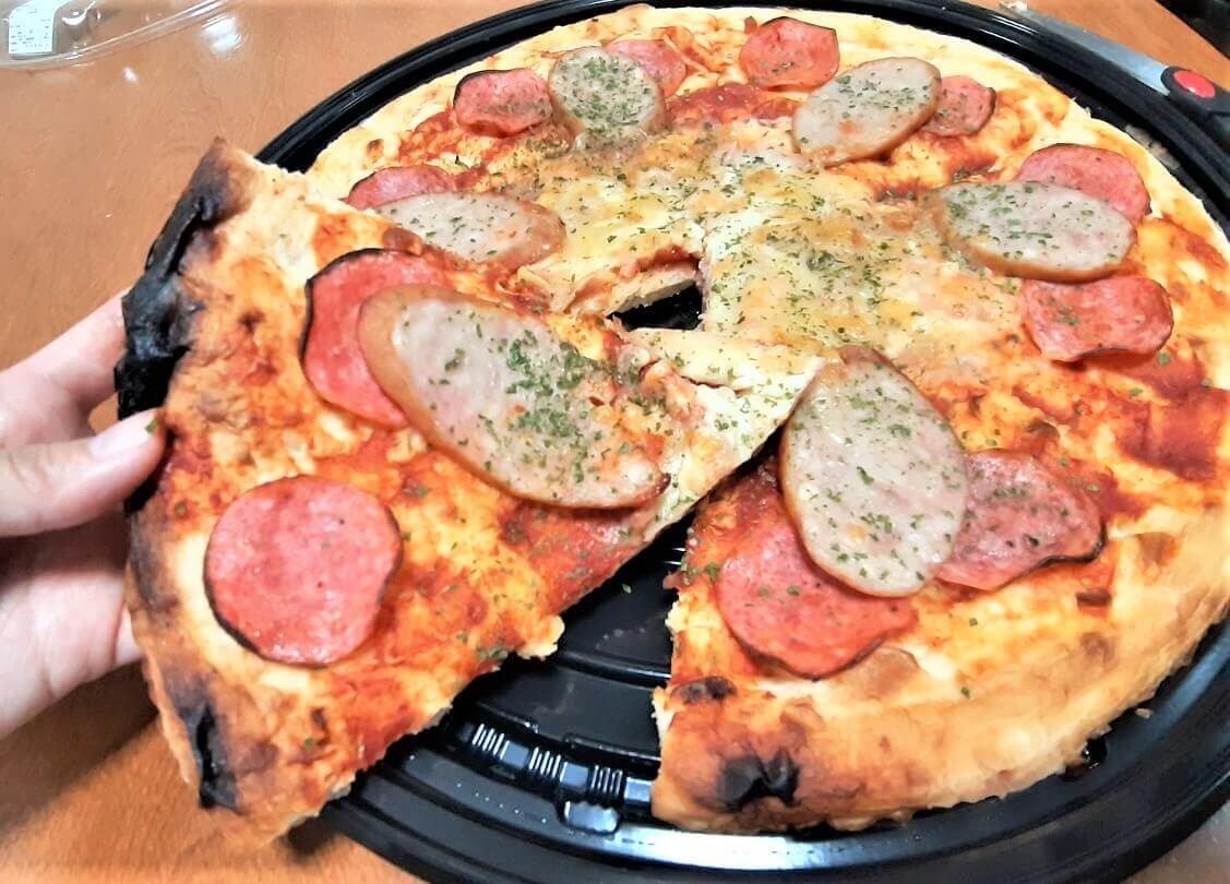 食べる前に電子レンジで20秒ほど温めるとふっくら、そしてふんわりチーズの香りが漂うホットピザになります。