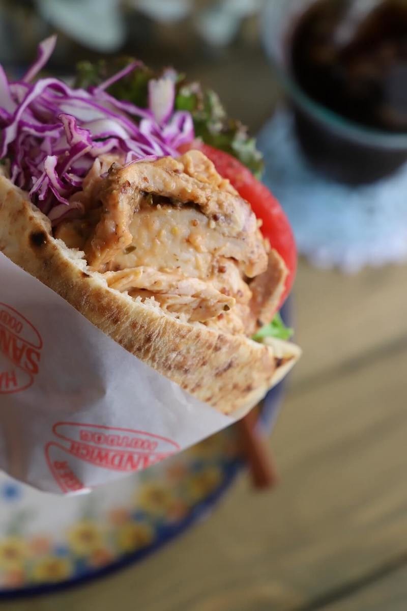 味がしっかりとしているので、ピタパンには何も塗らなくても野菜と一緒においしくいただけますよ。