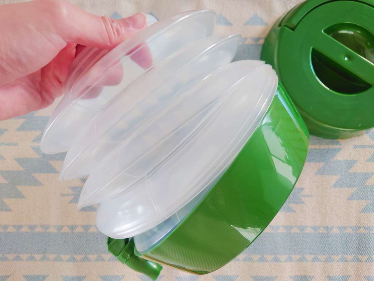 夕方洗って逆さに乾かしましたが、次の日の朝じゃばらにまだ水滴が残っていたたため、拭き取って強制的に片付けてしまいました。