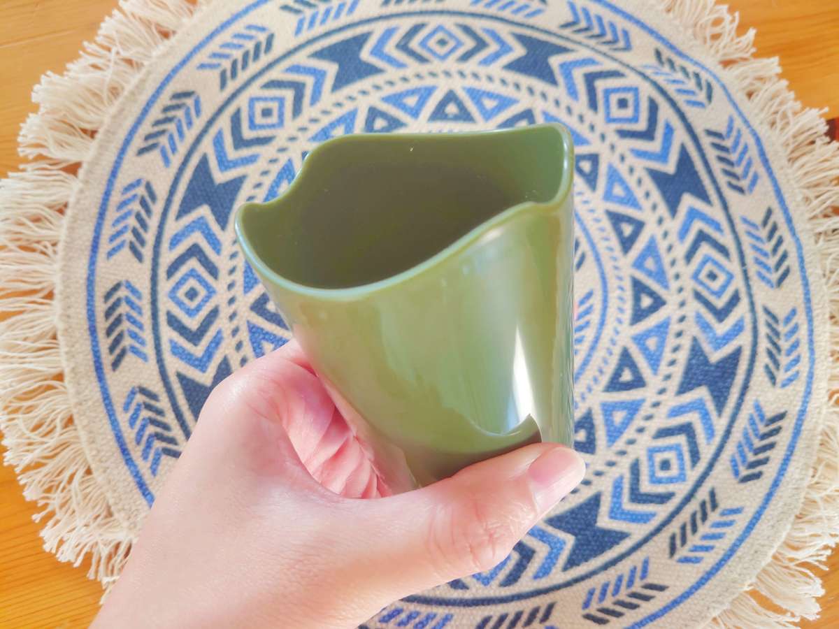 このウェーブも考えられて作られており、飲みやすいように口のカタチに沿っているそう。