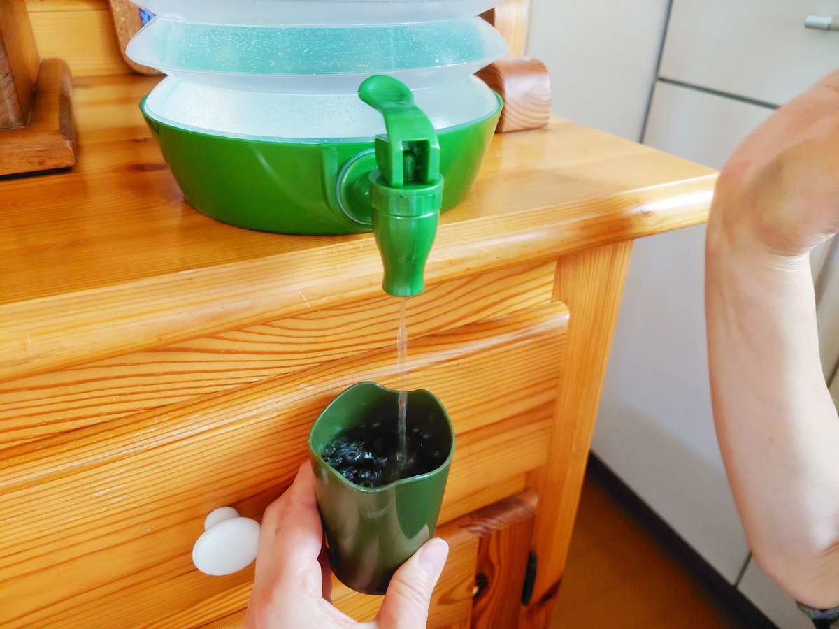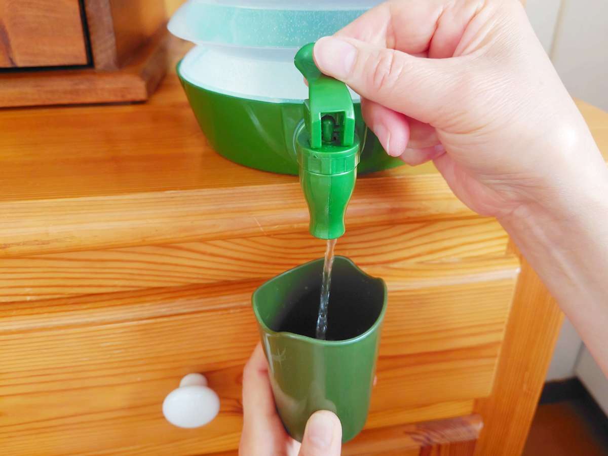 水がたくさん汲めて、使いたい分だけ蛇口から注いで使える大人気のアイテムです。