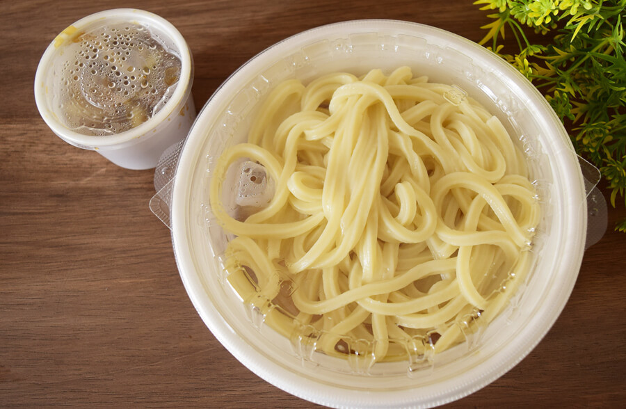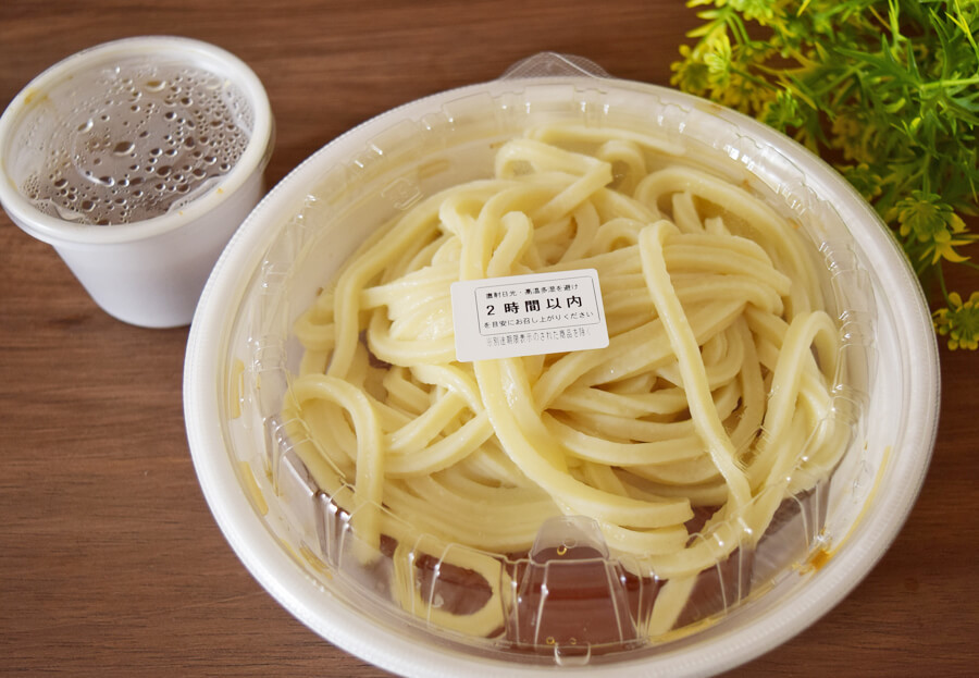 ぶっかけうどん(冷)・かけうどん(温)と選択肢は2つありましたが、この日は暑かったのでぶっかけうどん(冷)を持ち帰り。
