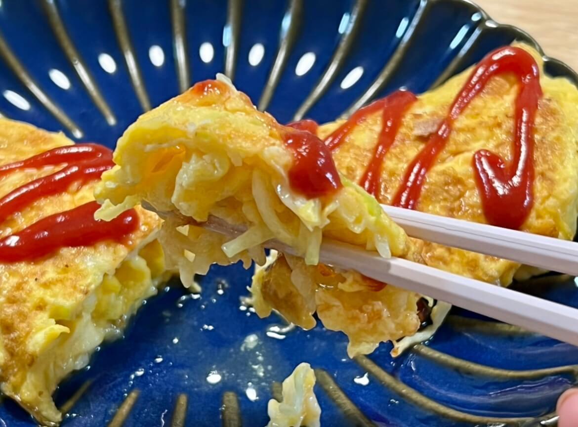 キャベツと卵だけにもかかわらず、食べ応えとボリュームたっぷり!これなら余ったキャベツがどんどん食べられます。