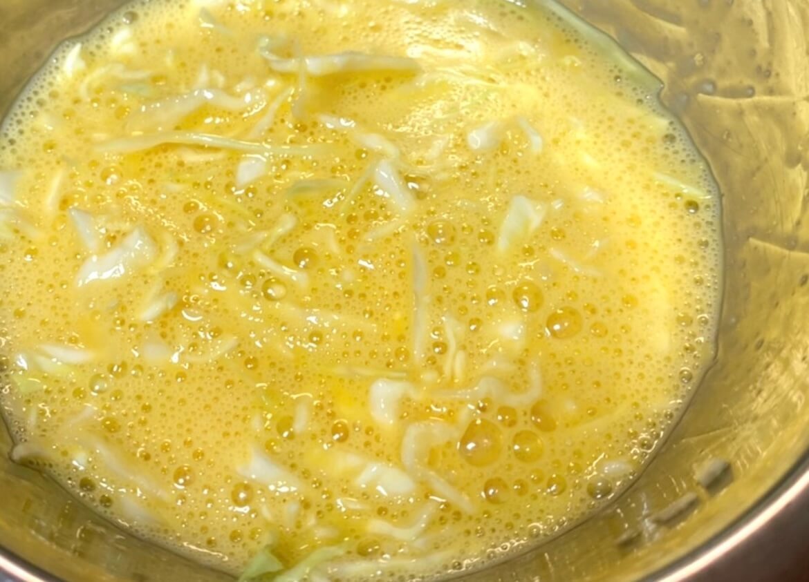 キャベツレシピ②溶き卵にキャベツを混ぜる